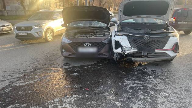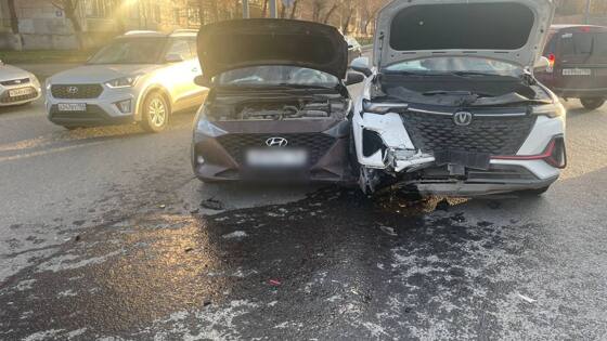 Сегодня вечером на улице Туркестанской в Оренбурге случилось ДТП. По предварительным данным регионального УМВД, водитель «Хендай» не уступил дорогу «Чанган», в результате чего произошло столкновение.