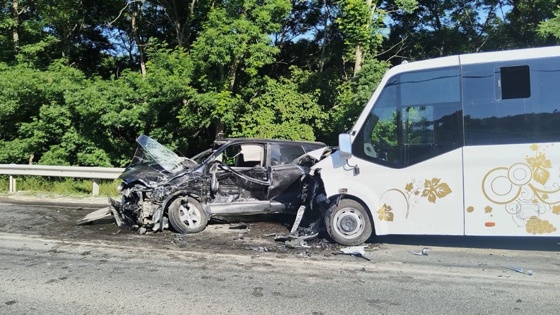 Как рассказали в пресс-службе ГУ МВД России по Краснодарскому краю, утром 1 июня на автотрассе "Подъезд к селу Абрау Дюрсо" водитель Nissan на закруглении дороги не справился с управлением, выехал на встречную полосу, где столкнулся с перевозившим пассажиров автобусом ГАЗ.