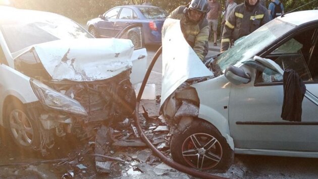 На выложенных в Сеть кадрах видно, что Renault и Hyundai получили серьезные повреждения, столкнувшись почти лоб в лоб. От автомобилей разносились клубы дыма, на месте работали сотрудники МЧС и медики.