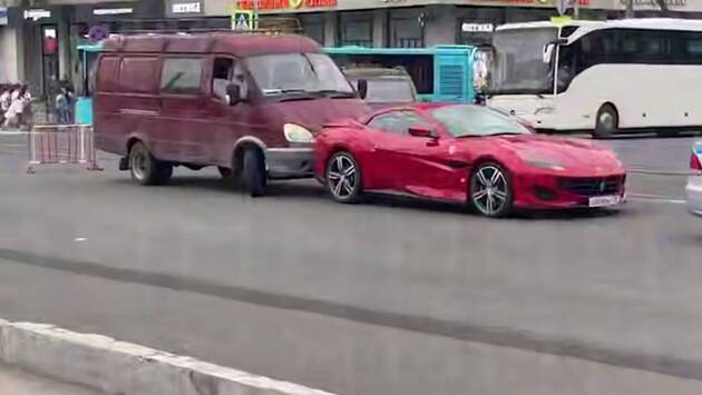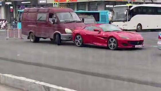 В Санкт-Петербурге «Газель» столкнулась с автомобилем Ferrari Portofino, цена которого составляет миллионы рублей. Соответствующее видео публикует Telegram-канал «Mash на Мойке».