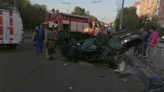 После этого «семерка» ушла в занос с разворотом и врезалась в ограждение, из салона вылетел один из пассажиров и упал на тротуар. Автомобиль остановился, перевернувшись на бок.