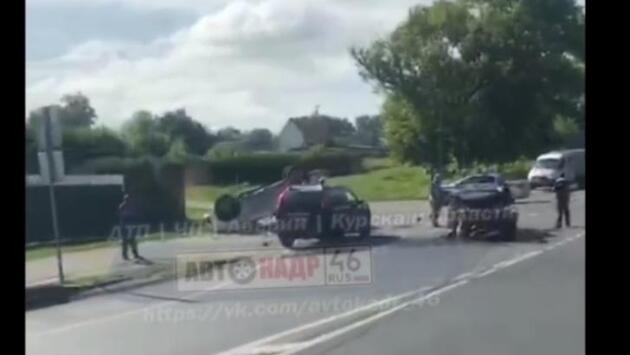 В Курской области после столкновения автомобиль перевернулся на крышу