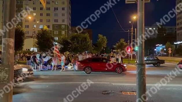 Автомобиль сотрудников полиции опрокинулся и перевернулся на Профессиональной улице в подмосковном Дмитрове. Видео с места событий опубликовал Москва».