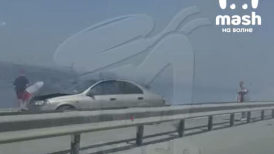 Далее на записи заметно, что люди, сидящие в легковой машине очень испуганы: женщина держится за голову. После столкновения к ним подбегают очевидцы.