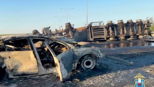Как установило ведомство, 29 июля в 1:30 на 1025-м километре +700 м трассы в Аксайском районе водитель грузовика Mercedes Actros с полуприцепом-цистерной снес барьерное ограждение, в результате чего опрокинулся и выехал на встречную полосу, где столкнулся с фургоном Peugeot Boxer и легковыми Volkswagen Passat и Lada Vesta.