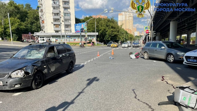 В Москве на дублере Можайского шоссе легковой автомобиль столкнулся с электровелосипедом. Об этом столичная прокуратура сообщает в своем Telegram-канале.