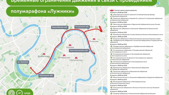 А в воскресенье перекрыты будут некоторые набережные в центре города. Здесь побегут участники полумарафона "Лужники".