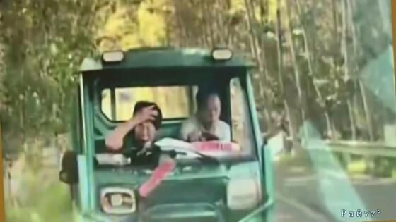 Водитель грузовика попытался совершить обгон на узкой дороге, а автомобиль, судя по кадрам предоставленной Рай77° Вне времени, вне политики! видеозаписи резко вильнул влево, чтобы избежать столкновения, в результате чего трехколесное транспортное средство получило серьёзные повреждения.