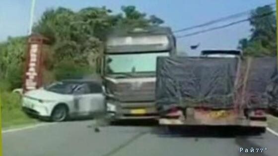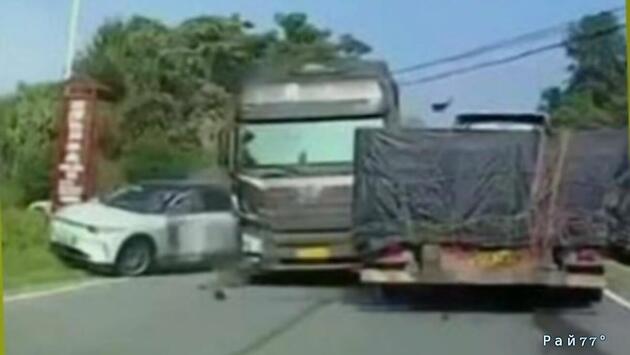 Автомобиль «подрезал» грузовик, который протаранил большегруз в КНР