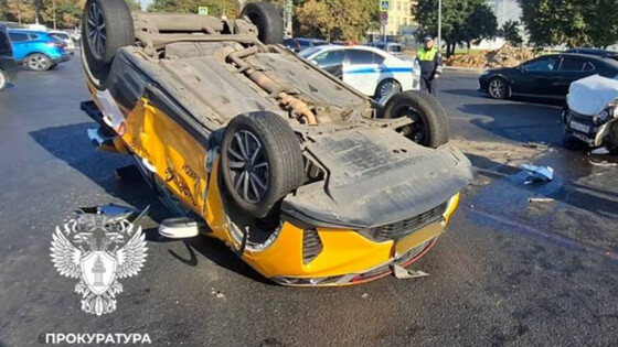 «На Волгоградском проспекте водитель автомобиля такси, выезжая на перекресток для осуществления разворота, не предоставил преимущество в движении и совершил столкновение с автомобилем FAW, после чего произошло опрокидывание автомобиля такси», — говорится в публикации.