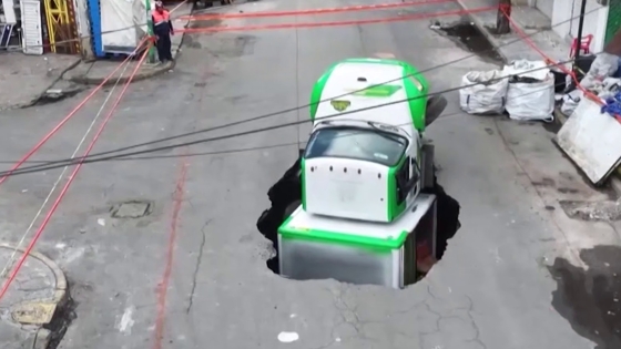 В Мехико грузовик с газировкой провалился под асфальт в районе Истапалапа. Об этом сообщает Telegram-канал Shot.