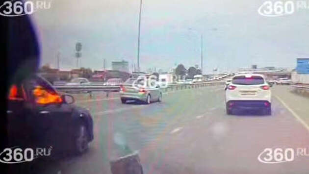 Видеорегистратор автомобиля, водитель которого стал очевидцем произошедшего, запечатлел инцидент. На кадрах видно, как черная машина взрыва в момент движения, пламя полностью охватывает салон. По словам очевидцев, водитель и пассажир выбрались из горящей иномарки самостоятельно.