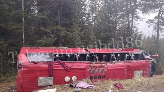 Два человека погибли при опрокидывании автобуса в Ханты-Мансийском районе