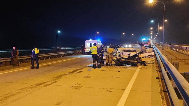 Здесь 43-летний водитель автомашины Toyota Prius наехал на леерное ограждение, после чего столкнулся с груженым автовозом. В результате ДТП водитель легкового автомобиля погиб. Пассажир иномарки - мужчина 38 лет - госпитализирован с травмами различной степени тяжести.