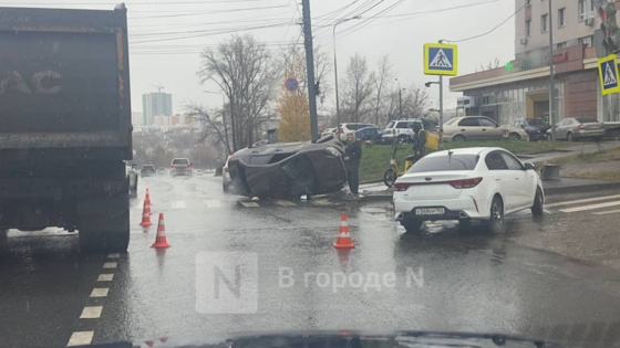 Автомобиль перевернулся на улице Ванеева в Нижнем Новгороде 28 октября. Фотографию в редакцию ИА «В городе N» прислали очевидцы.