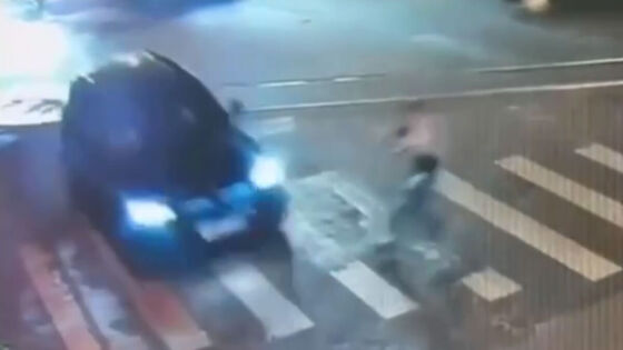Уличная камера запечатлела инцидент. На кадрах видно, как пешеход разгоняется и начинает перебегать проезжую часть, в этот момент на переход выезжает черная машина, в которую врезается человек. От удара мужчина отлетает в сторону и падает на дорогу