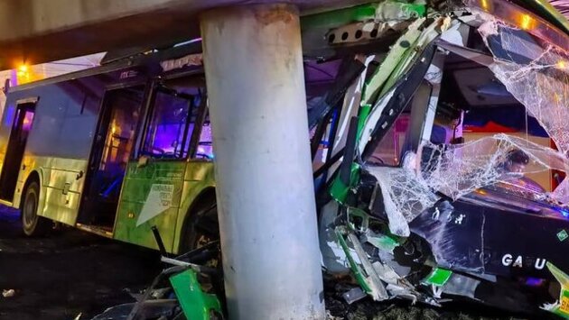 Автобус врезался в опору моста в Челябинске