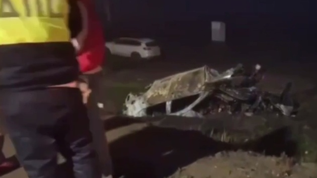 После столкновения с препятствием машина съехала с дороги, перевернулась и загорелась. Юный водитель погиб на месте.