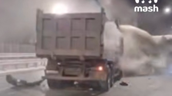 По информации канала, столкнулись пять автомобилей. Судя по опубликованным кадрам, минимум два из них — большегрузы. Машины получили серьезные внешние повреждения, водитель одного из грузовиков оказался зажат в кабине. Женщине из разбитого салона легковушки помогли выбраться другие водители.