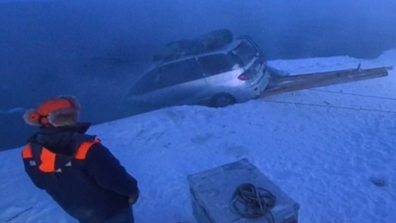 "Машина переезжала реку в неположенном месте и попала в полынью, образовавшуюся из-за сточных вод. Движение машин в этом месте запрещено. Возможно, водитель заблудился в темноте и тумане", - говорится в сообщении.