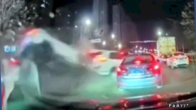 Участник дорожного движения, ожидающий разрешительного сигнала светофора на перекрёстке дорог в Поднебесной, стал очевидцем сокрушительного ДТП.