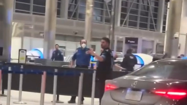 На видео, размещенном в социальных сетях, видно, как синий четырехдверный седан остановился с открытыми капотом и багажником перед стойками компании Delta Air Lines в зале вылета.