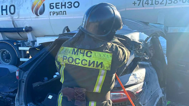 Водитель Toyota Harrier, по предварительным данным, выехал на встречную полосу и врезался в бензовоз.