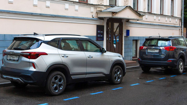 Синяя разметка на парковке дополняет дорожные знаки, но не заменяет их. Синий пунктир нанесён пока не на всех платных парковках в России.