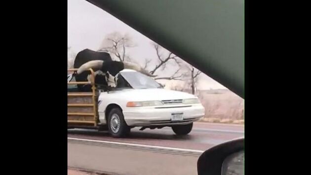Находчивый фермер из американского штата Небраска сумел втиснуть огромного быка в салон своей легковушки, на которой и отправился вместе с питомцем в путешествие. "Стойло на колесах" поразило многих водителей, тут же включавших запись на телефоне. "Мы специально обгоняли машину и сделали две дополнительные остановки, поскольку не могли поверить своим глазам. Да, мы видели много собак с высунутыми в окно мордами, но такого — никогда", — признался автор ролика, сделанного на севере Небраски. Судя по кадрам, фермеру пришлось серьезно поработать над конструкцией автомобиля, удалив часть крыши, обе боковые двери и сидения, — иначе массивный бык попросту бы не поместился в салоне. Тем не менее голова животного грозно нависала над лобовым стеклом своеобразного "стойла на колесах".