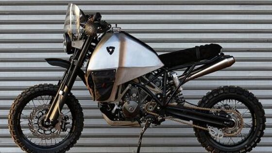 Мастера кастомайзинга в мире мотоциклов - обязательно бывшие пилоты кроссовых байков. Они всегда что-то подправляют, подкручивают, регулируют в поисках оптимальных настроек, с помощью которых можно добиться максимальной производительности. Иронично, что самая большая модернизация, которой можно подвергнуть кроссовый байк, заключается в установке комплекта, который улучшит привод обоих колес. Именно такую машину мы и представляем вам сегодня. KTM 950 Super Enduro - это мощный мотоцикл, который одинаково комфортно чувствует себя и на трассе, и в грязи. Идеальный кандидат для установки двухколесной системы привода. Креативный директор компании REV'IT! Гербрандт Аартс думает также. Он собрал команду KTM, чтобы построить невероятно проходимый кастом. Идея заключается в том, чтобы создать абсолютно новый стиль, посредством переделки бэушного мотоцикла ADV в настоящую проходимую машину. Ее назвали #95, должно быть, чтобы увековечить год, когда компания REV'IT! занялась производством мотоциклов. Если говорить техническим языком, то на KTM используется система полного привода, а не система 2WD. Первыми эту систему начали использовать в компании Christini Technologies, чьи мотоциклы приводили в восторг многих, а также пришли на помощь ВС США. Система довольно интересна. Посредством механизмов и валов энергия передается со звездочки вторичного вала на головку, где она снова превращается при помощи пары, вращающихся в разные стороны валов привода колеса. Это не единственная модификация. Раме пришлось придать новую форму, чтобы установить алюминиевые панели, а также огромный топливный бак объемом 45 литров. Теперь топливо подается в двигатель при помощи 41-миллиметровых карбюраторов Keihin FCR. Что касается выпускной системы, то она была изготовлена вручную из нержавеющей стали. Не надо обладать богатым воображением, чтобы представить, какой внушительный рев она издает. Тормозная система также была улучшена с использованием тормозных дисков, суппортов и главного тормозного цилиндра. Мощность передается на колеса через цепи DID с кольцами х-образного сечения и заднюю звездочку. Что касается колес (19-дюймовое спереди и 17-дюймовое сзади), то они состоят из втулок, ободов и спиц из нержавеющей стали. Колеса спроектированы таким образом, что на них можно установить более экзотические варианты, например, шипованные шины или шины с лопастями для езды по песку. Среди более привычных модификаций установка легкого аккумулятора, светодиодная передняя фара диаметром 7 дюймов, а также светодиодные стоп-сигналы и «поворотники».