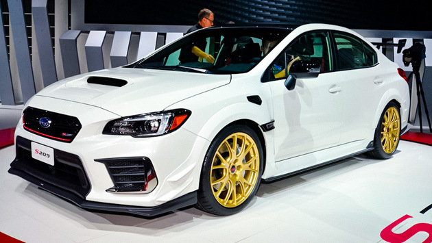 Каким ветром WRX STI занесло под софиты Детройтского автосалона? Очень просто — лимитированный спортседан ориентирован на рынок США. Сама компания признается, что черпала вдохновение в грозном гоночном WRX STI Nürburgring Challenge, победителе прошлогоднего суточного марафона в классе SP3T. Вот откуда расширенные колесные арки, вмещающие 19-дюймовые колесные диски BBS с покрышками Dunlop SP Sport Maxx GT600A размерностью 265/35, которые позволяют доводить боковые перегрузки до 1,0 g. У спецверсии, как нетрудно догадаться, старый и заслуженный четырехцилиндровый оппозитный двигатель EJ25 объемом 2,5 л. Агрегат доработан, в частности, у него более производительная топливная система, кованые (более легкие и прочные) поршни и шатуны, доработанный впускной и выпускной тракт, а также турбонагнетатель HKS с увеличенным турбинным и компрессорным колесом, создающий более высокое давление. Все это позволило довести мощность до 341 л.с. Не менее важно увеличение крутящего момента на 10% в районе 3600 об/мин — больше тяги на средних оборотах двигателя позволит увеличить скорость выхода из поворотов. На виражах S209 вообще обещает море веселья — не зря же у нее амортизаторы Bilstein, более жесткие пружины, задний стабилизатор поперечной устойчивости диаметром 20 мм и разные ухищрения, направленные на увеличение жесткости конструкции вкупе с передними шестипоршневыми и задними двухпоршневыми суппортами Brembo! Изменены настройки системы выбора режимов движения SI-Drive с пресетами Intelligent, Sport и Sport Sharp. Традиционно спорткар имеет шестиступенчатую механическую коробку передач, межосевой дифференциал DCCD с возможностью изменения степени блокировки и жидкостное орошение интеркулера.