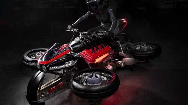 Фирма Lazareth Auto-Moto из французского Анеси-ле-Вьё показала на видео ховербайк LMV 496, который может передвигаться по дорогам как обычный мотоцикл и летать. Он построен на базе кастома LM847 и вместо двигателя 4.7 V8 Maserati оснащен четырьмя турбинами, работающими на керосине. В конструкции Lazareth LMV 496 используется карбон-кевларовый композит и другие высокопрочные материалы. Мотоцикл оборудован сдвоенными колесами, которые из вертикального положения в горизонтальное переводятся с помощью кнопки на центральной панели. В ступицу каждого колеса вмонтирована турбина — все четыре в сумме выдают 1300 лошадиных сил и 2800 Нм крутящего момента. В режиме полета на панель перед рулем выводится вся необходимая информация: скорость, высота, данные о местоположении и обороты турбины. Lazareth LMV 496 будет выпущен очень ограниченной серий, и в компании хотят получить разрешение на его эксплуатацию в регулирующих органах Франции.