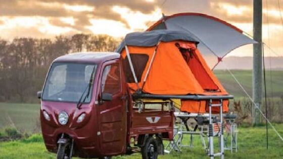 Необычный кемпер был разработан на базе электрифицированного мотороллера. По словам производителей, модель разработана для непродолжительных и недалеких поездок на природу. Практически всегда, когда речь идет о домах на колесах, подразумевается, что это большая и удобная техника. Но в данном случае, размер трейлера совсем небольшой, но при этом в нем есть все самое необходимое. Вес кемпера 240 килограмм, а длина 274 сантиметра. На крыше кемпера расположена палатка для двоих туристов. Кроме того, кемпер включает в себя полноценную раскладную кухню. Модель оснащена аккумулятором мощностью 4,3 кВт*ч и 3,4-сильным электромотором. Малая мощность позволяет ему разгоняться только до 40 километров в час. На одном заряде батареи можно проехать до 60 километров. Для полного заряда аккумулятора требуется 6-8 часов. Стоимость кемпера с кабиной - 4990 евро. В российском эквиваленте цена модели составляет 343 000 рублей. Без кабины приобрести кемпер можно за 3990 евро или 274 000 рублей.