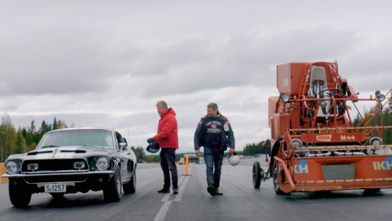 Авторы YouTube-канала Barcroft Cars организовали необычный дрэг-заезд — они сравнили в скорости маслкар Shelby Mustang GT350 и зерноуборочный комбайн Fahr M44. Сельхозтехника может выглядеть явным аутсайдером, но её приводит в движение твин-турбо V8. Самый непредсказуемый дрэг: проливной дождь и 30 непохожих машин Суперкомбайн построили три года назад финские умельцы, а затем он попал в руки к норвежцу Харальду Бору. Главное изменение в нем — двигатель V8 от Сadillac Eldorado 1976 года, дополненный двумя турбонагнетателями и развивающий около 500 лошадиных сил. С таким мотором и трехдиапазонным автоматом Fahr M44 проезжает четверть мили (402 метра) за 14,1 секунды и разгоняется до 155 километров в час. Видео: Barcroft Cars Его соперник на гонке, Shelby Mustang GT350 1968 года, оснащен 5,0-литровым Windsor V8, выдающим всего 250 сил. Из-за того, что в агрегате было меньше гоночных элементов, он оказался не таким мощным, как предыдущий мотор объемом 4,7 литра, который ставили на GT350 1967-го. Пар сельского периода