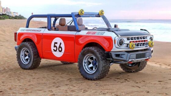 Род Холл был мастером гонок по бездорожью, и в конце 1960-х годов он довел Ford Bronco до побед в классе и в общем зачете в соревновании Baja 1000 . Теперь Abimelec Design возродил внешний вид этого надежного автомобиля, в сочетании с Bronco 2021 года. Новый Bronco сохраняет пропорции оригинального поколения, поэтому ливрея 1960-х годов очень хорошо подходит для этого рендеринга. Для движения по бездорожью Bronco, вдохновленный Родом Холлом, едет на колесах с пятью спицами с большими шинами, а также имеет немного большую высоту. Лампы KC на бампере и верхней части ветрового стекла помогут осветить путь впереди. Там нет крыши или окон, и задних сидений тоже нет. Полноразмерное запасное колесо занимает часть нового пустого пространства. Abimelec Design представляет этого внедорожник с 5,2-литровым V8 от Ford Mustang Shelby GT500 с наддувом . С 760 лошадиными силами (567 киловатт) и 625 фунт-футами (847 Ньютон-метров) крутящего момента это весьма удачное улучшение, по сравнению с имеющимся 2,7-литровым V6 EcoBoost с двойным турбонаддувом, мощностью 310 л.с. и (542 Нм) крутящего момента. Ford уже продемонстрировал собственную гонку по бездорожью на Bronco. Компания заявила, что она была посвящена 50-летию победы над Baja 1000 в 1969 году. Современный Bronco R имел капитально отремонтированную подвеску с 14-дюймовым ходом спереди и 18-дюймовым сзади. Внутри не было окон.