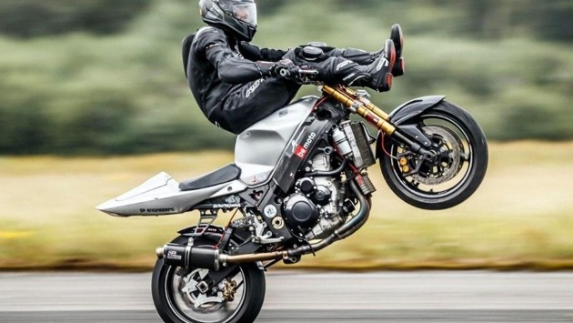 Мотоциклист установил рекорд скорости по езде на заднем колесе, сидя ногами вперед