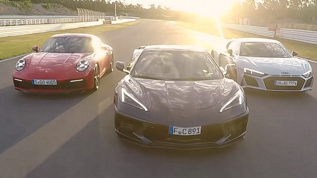 Видео: Chevrolet Corvette C8, Porsche 911 и Audi R8 сразились на гоночной трассе