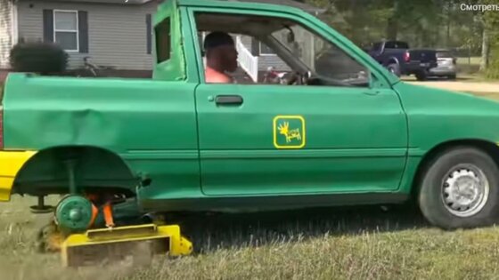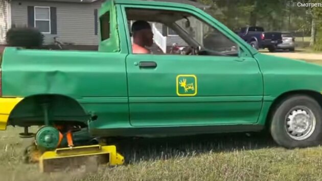 Чтобы не обгореть и не вспотеть при работе на открытом воздухе он обратил внимание на Ford Festiva. В нем колеса сзади заменила непосредственно газонокосилка.