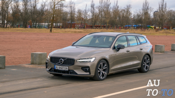 В эпоху гегемонии кроссоверов появление в пресс-парке импортера универсала, или седана вашим покорным слугой воспринимается как настоящий праздник. Volvo V60 – это меньший из семейства шведских универсалов, который по стилю почти повторяет старший V90 и средненький кроссовер ХС60. Но что же в машине свое, персональное? Знакомые формы Называть экстерьер героя нашего теста незнакомым и особенным было бы преувеличением. Конечно, главное отличие от родственников – это меньшие внешние габариты и слегка укороченная колесная база. Спереди отличить V60 можно по выразительной и слегка выдающейся вперед нижней губе бампера, в профиль поможет только осознание меньших габаритов, с кормы же точно опознать модель труднее всего – в помощь фирменный шильдик. Но от того, что машина имеет схожий с другими актуальными моделями компании дизайн, она не становится хуже. В темном пакете, без хрома на решетке радиатора и других элементах декора, «Вольво» выглядит строго и сдержанно, и даже несколько таинственно. О серьезности машины говорят зоны бесключевого доступа на всех дверях, наличие сенсора бесконтактного открытия крышки багажника. Чтобы как-то отделить модель от старших братьев, ей «вручили» только одну камеру заднего вида, но с очень точными датчиками парктроника, графика работы которых очень информативно выводится на дисплей в салоне. Субъективно, благодаря своей компактности «шестидесятка» смотрятся симпатичнее родственников. Интересно, что герой нашего теста производится на родном заводе в шведском Гетеборге, а седан S60 – за океаном, в США. Прост и красив Про салон и инфотеймент не хочется заводить разговор, пока не описан один из самых вместительных и удобных багажников в классе. В стандартном положении грузовой отсек под полкой вмещает 529 л поклажи, причем без учета подполья. Со сложенными задними сиденьями помещается 1364 литра. В комплектации для Украины под полом нашлось место для временного запасного колеса, домкрата, буксировочного крюка и прочего обязательного инвентаря. Заднюю полку можно заставить двигаться в двух направлениях: строго горизонтально и параллельно задним стойкам. Но кроме сухих цифр, размеры багажников универсалов и кроссоверов я привык мерить сложенной детской коляской-тростью: если она умещается вдоль, или поперек, то багажник хорош, если же только по диагонали, то «бывало и лучше». В случае с V60 – с багажным отсеком полный порядок. Интерьер универсала можно оформить в разных материалах: с преобладанием дерева и ткани, кожи и алюминия и пр. 12,3-дюймовый виртуальный щиток приборов знаком по другим моделям концерна. Он не вызывает никаких эмоций, он просто удобен и хорошо читается. Что еще нужно? А вот к девятидюймовому планшету Sensus Connect на центральной консоли нужно долго привыкать. Точнее даже не к нему – он отзывчив и не подтормаживает, а к логике меню, особенно к пути в настройки «микроклимата». Стеклоочистители со встроенными в щётки подогреваемыми форсунками не позволяют экономно взбрызнуть и смахнуть лишь небольшое количество слякоти, но держат датчики под лобовым стеклом всегда в чистоте. Спортивные передние кресла исполнения R-Design имеют множество регулировок и память. Из-за массивной центральной консоли и подлокотникам ощущения простора за рулем не возникает. На заднем ряду места не с излишком, но пр