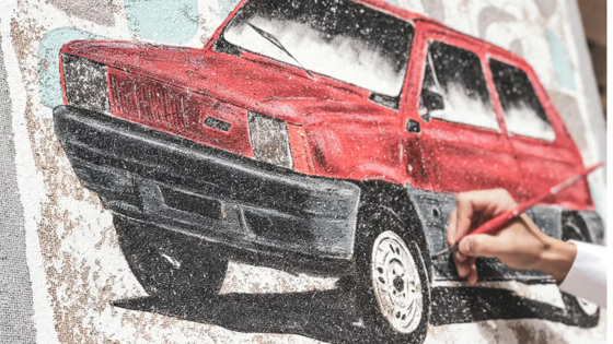 Fiat, Lancia и Alfa Romeo — их классические модели он безжалостно и гениально переосмысливает в дерзком поп-стиле, используя при этом технику «масло на холсте», унаследованную от отца, Николы Берардино.
