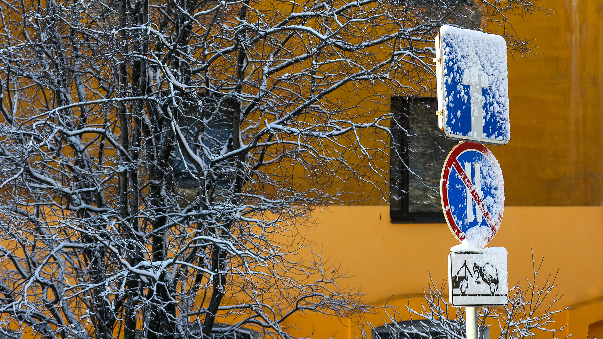 Весенняя метель — это, как правило, сыпящий с неба мокрый снег и сильный ветер. Летящая почти параллельно земле мокрая каша мгновенно покрывает даже вертикальные гладкие поверхности. В том числе и дорожные знаки.